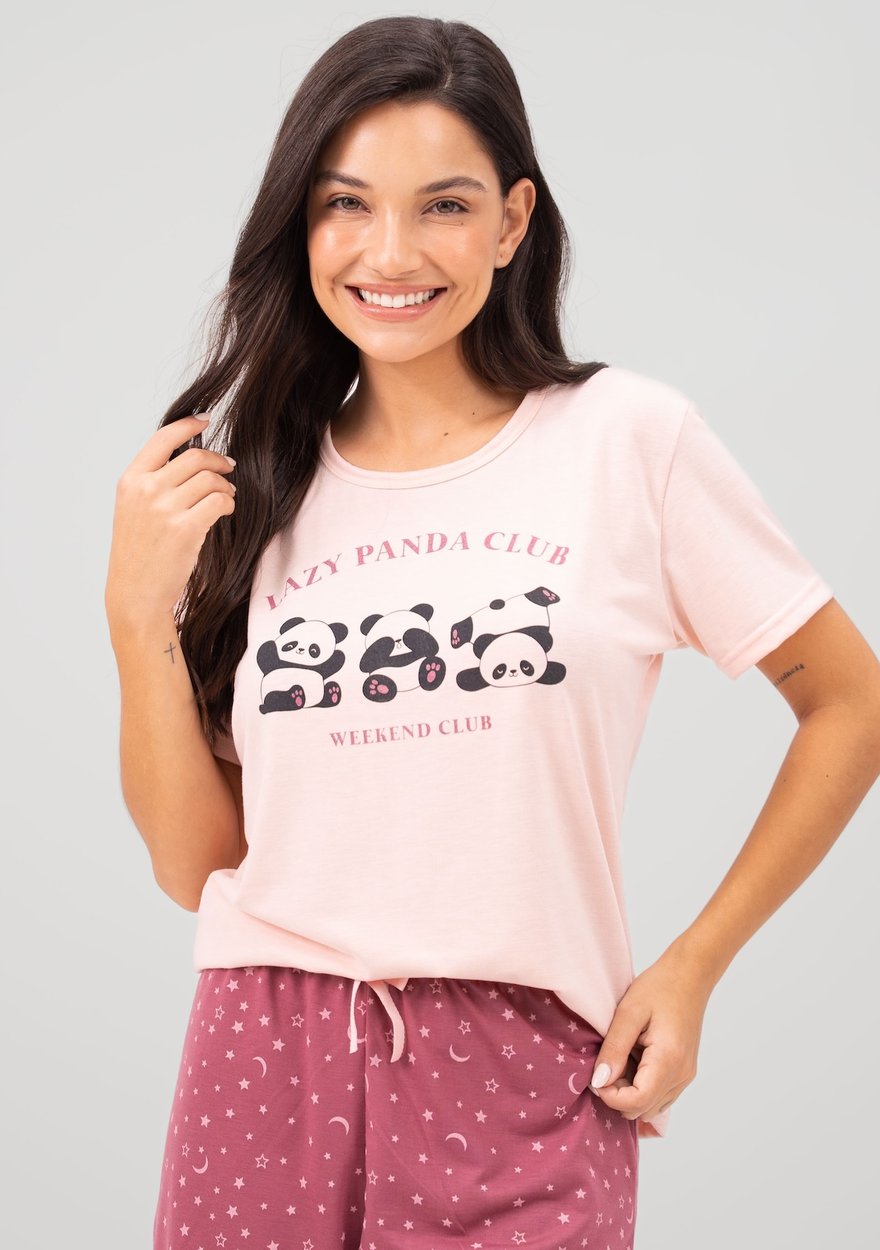 O destaque fica por conta da estampa em silk com desenho de panda, trazendo um visual moderno, fofo e exclusivo. O silk garante maior durabilidade da estampa, com acabamento impecável e toque suave, sem incomodar a pele.