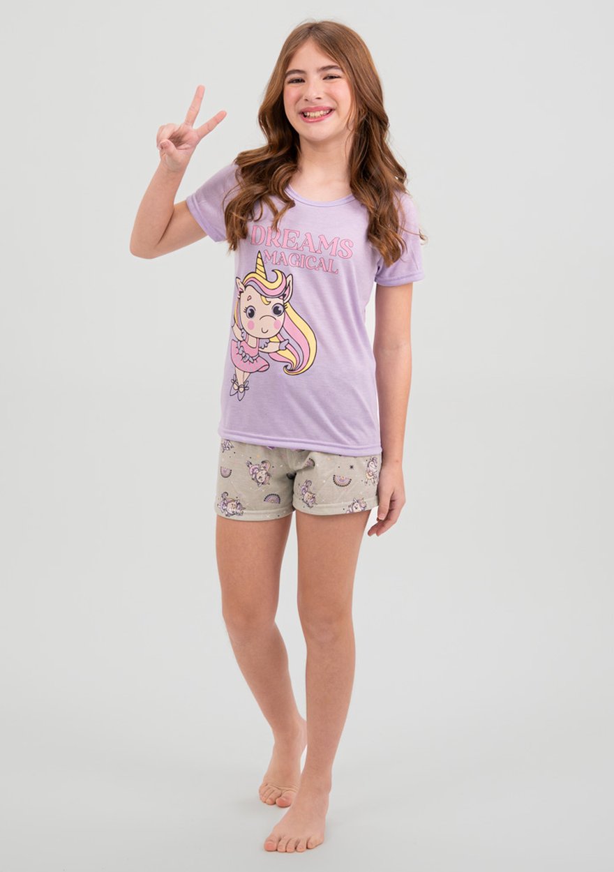 O pijama Sonho Mágico foi criado para meninas que adoram deixar a imaginação voar! Com uma estampa encantadora e cheia de fantasia, ele transforma a hora de dormir em um momento mágico, com muito conforto e delicadeza.