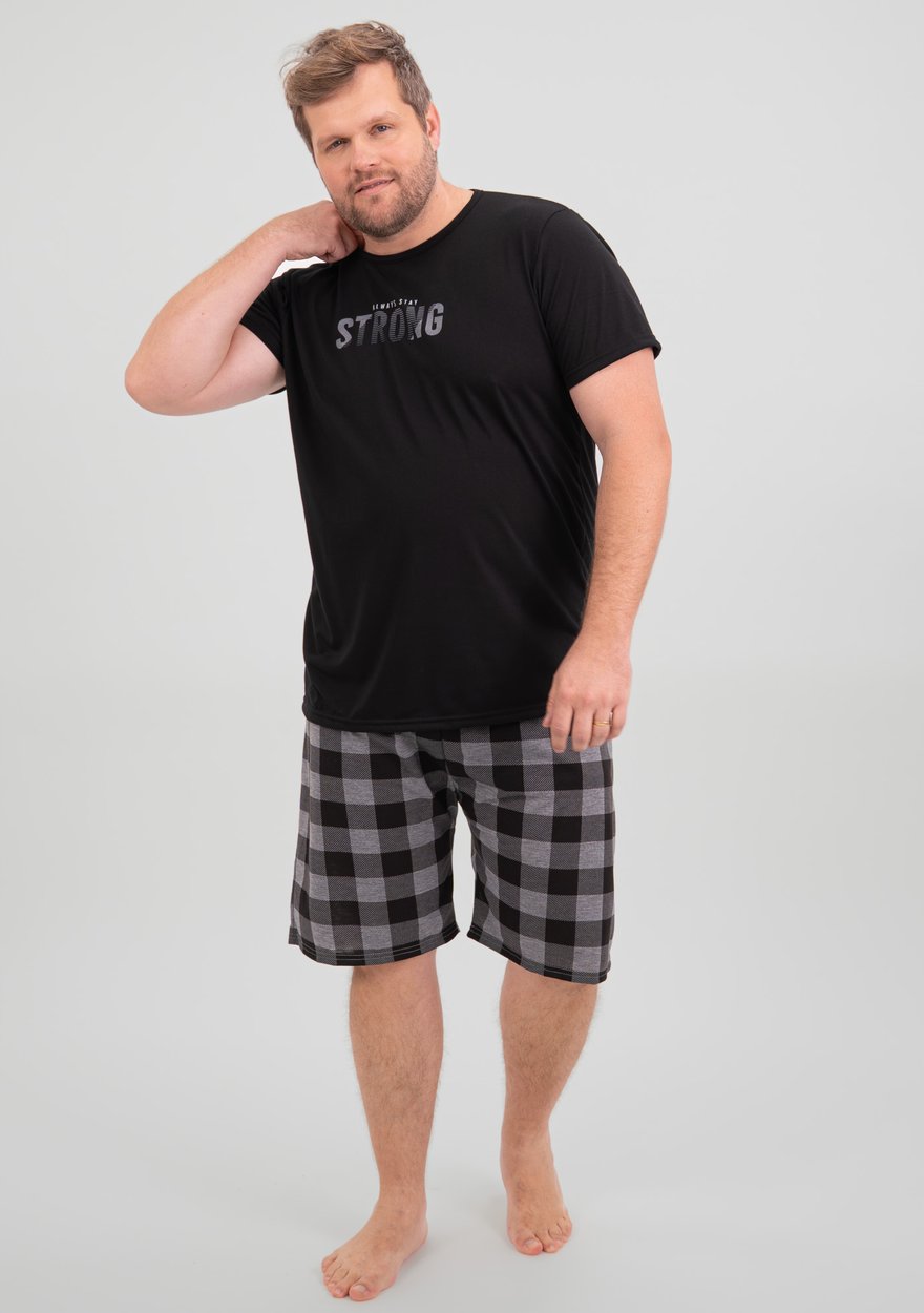 Disponível nos tamanhos G1, G2 e G3, o conjunto conta com regata e shorts, proporcionando liberdade de movimento e conforto nos dias mais quentes. Confeccionado em malha PV (65% poliéster e 35% viscose), o tecido é leve, respirável e macio ao toque — ideal para noites tranquilas ou aquele fim de semana relax em casa.